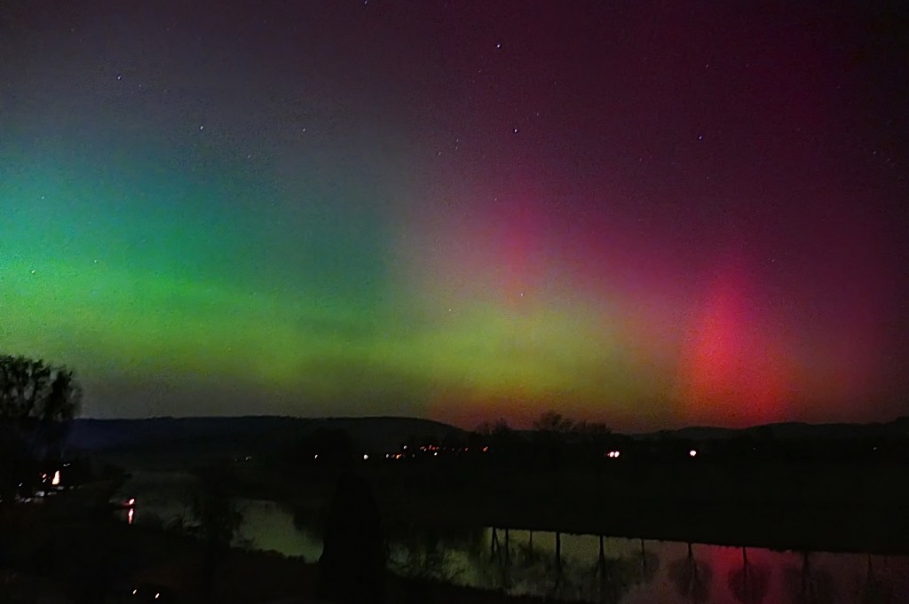 Ein zumindest leichtes Plus gab es hingegen bei der Sonnenscheindauer, die mit gut 51 Stunden um rund sechs Stunden über dem Mittel der Jahre 1991-2020 lag. Wer trotzdem einen weitgehend grauen Monat in Erinnerung hat, liegt damit nicht einmal falsch, denn weit über die Hälfte der Monatssumme fiel auf die vier Tage vom 19. bis 22., die es aber in sich hatten: Einerseits wurde täglich nahezu die maximal messbare Tagessumme von siebeneinhalb Stunden erreicht, zudem gab die sehr geringe Bewölkung dieser Tage den Blick auf ein Farbspektakel am Nachthimmel frei: Gleich zweimal, am 19. und 20., gab es das Naturschauspiel von Polarlichtern in vorwiegenden Rot- und Grüntönen in Folge eines starken Sonnensturms zu bewundern – magische Momente, die viele mit ihrer Kamera oder dem Smartphone festhielten und teilten.