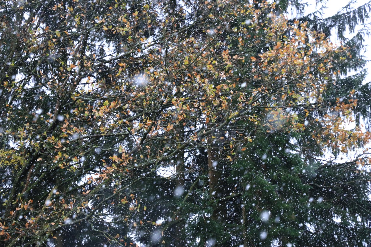 … mischte sich am frühen Nachmittag unter den Regen und etwas später ging der Niederschlag zumindest vorübergehend in reinen, nassen Schnee über. Auf den noch warmen Böden konnte sich zwar noch keine Schneedecke ausbilden, aber ein erster Schritt Richtung Winter scheint nun zumindest in den Hochlagen der Region gemacht.