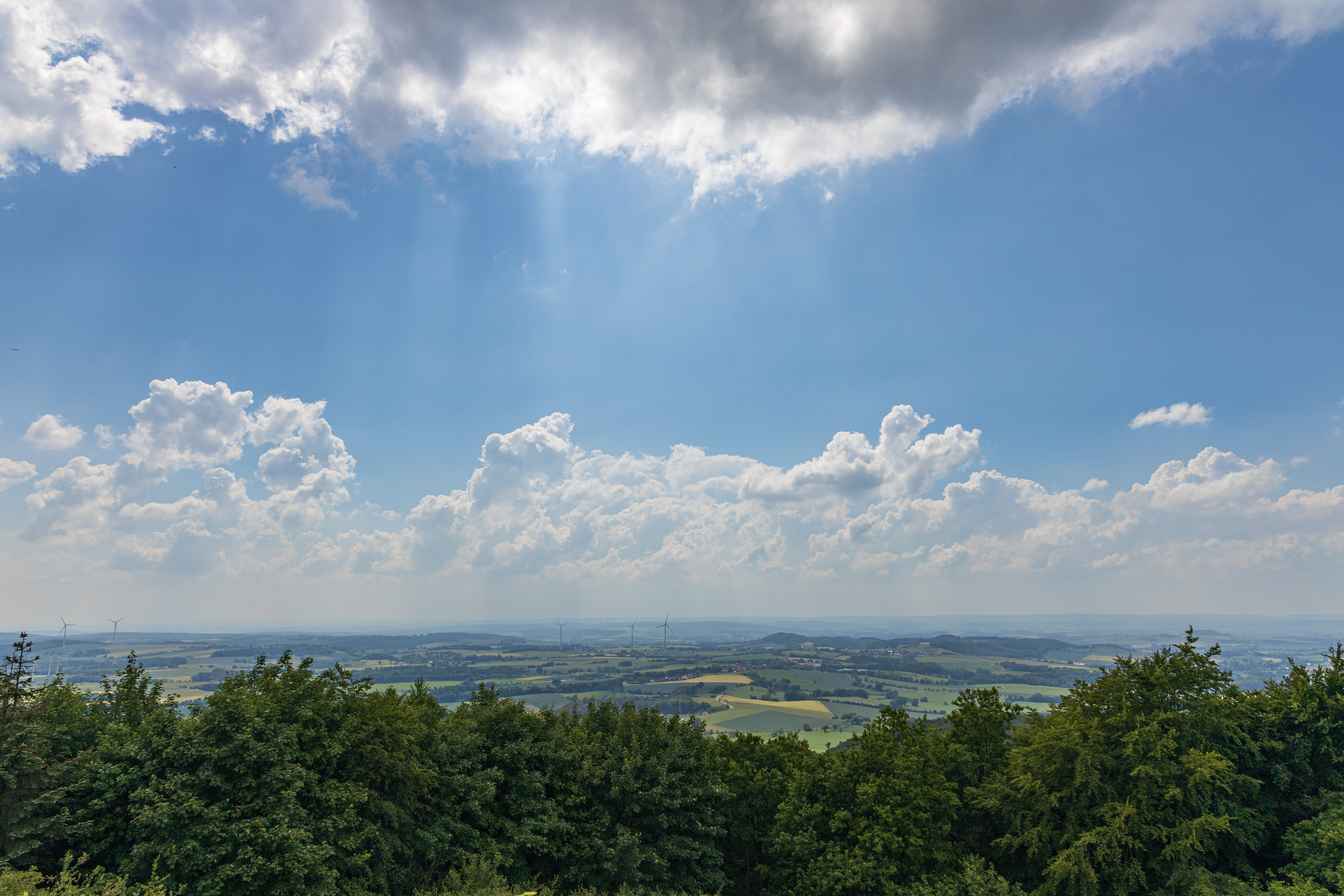 Deutlich moderater fielen die Sommertemperaturen im Solling aus. An der Station in Silberborn, die seit Mitte Juni auch über einen Windmesser in 10 m Höhe über Grund an einem separat aufgestellten Mast verfügt, betrug die Mitteltemperatur 16,1 °C und es wurden nur zwei heiße sowie 16 Sommertage gezählt. Doch natürlich müssen diese Werte im Kontext der Höhenlage und des daraus resultierenden kühleren Klimas betrachtet werden, entscheidend sind auch hier die Abweichungen zu den langjährigen Mittelwerten vor Ort. Und da fällt die Erwärmung der letzten 30 Jahre genauso deutlich aus wie in den Niederungen: Ein Durchschnittssommer der Jahre 1961-1990 erreichte in Silberborn noch 14,3 °C, von 1991-2020 waren es schon 15,6 °C – der Zuwachs beträgt im Hochsolling also ebenso wie im Oberwesertal 1,3 Kelvin. Oben wie unten war in diesem Sommer der August der mit Abstand wärmste Monat und der Juli der kühlste, wobei der Unterschied in Silberborn noch etwas deutlicher ausfiel.