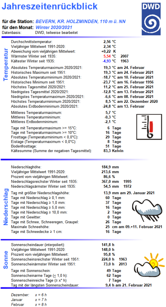 Rückblick auf den Winter 2021 an der DWD-Station Bevern