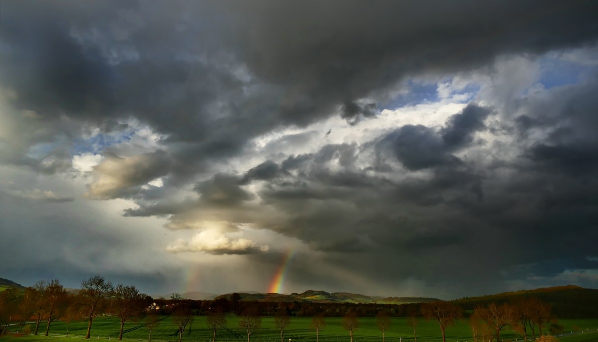 Bei vielen Wolken und bis kurz vor Monatsende vorherrschendem Tiefdruck blieb nicht allzu viel Platz für die Sonne, die sich nur rund 145 Stunden lang und damit 53 Stunden oder 27% weniger als im Mittel seit 1991 zeigen konnte. Sonnenscheinreiche Tage, definiert mit einer Quote von mindestens 80% der astronomisch möglichen Menge, gab es nur zwei – am 9. sowie am 31., als die Sonne zum Monatsausklang von früh bis spät schien. Umgekehrt waren komplett trübe Tage auch kaum einmal anzutreffen, bei der rasch wechselnden Bewölkung ergaben sich auch immer wieder mal Lücken für die Sonne – zur Freude gerade von Hobbyfotografen, die mit vielen optisch reizvollen Szenen inklusive diverser Regenbögen reichlich Motive geliefert bekamen vom Aprilwetter im Mai.