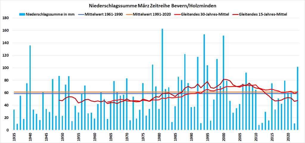 Der März 2023 war mild, trüb und sehr nass / Im Solling zeitweise spätwinterlich