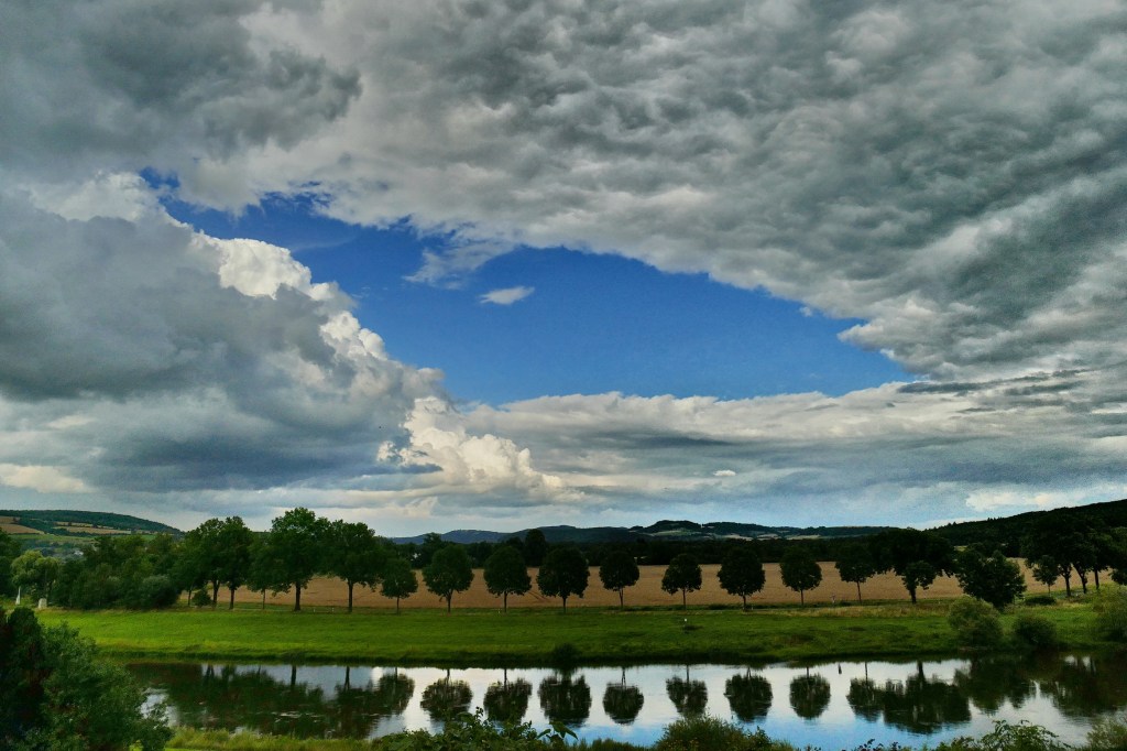 Aufgrund der Mischung von flächigem Regen und einzelnen lokalen Schauern fiel die Bilanz an den Niederschlagsstationen zwar fast überall überdurchschnittlich aus, im Detail ergaben sich aber Unterschiede. Am wenigsten fiel diesmal in Eimen-Vorwohle mit 82,5 mm, wo das Mittel der Jahre 1991-2020 sogar verfehlt wurde, gefolgt von Hehlen mit 86,2 und Bevern mit 86,7 mm, was jeweils einem leichten Plus gegenüber dem Klimawert entspricht. Deutlicher fiel dieses an den anderen Stationen aus: In Holzminden wurden 98,0 mm gemessen, in Polle 102,4, in Ottenstein 103,5, in Hellental 107,3 (davon allein am 24.07. 30,3 mm – der höchste Tageswert der Region) und in Lüchtringen 107,6 mm, wo es das größte Plus zum langjährigen Mittel gab. Silberborn übertraf sein Mittel mit 115,4 mm um 11% und die höchste Summe erzielte Amelith mit 124,1 mm. Insgesamt war es hinter 2017 und 2015 der drittnasseste Juli der letzten zehn Jahre.