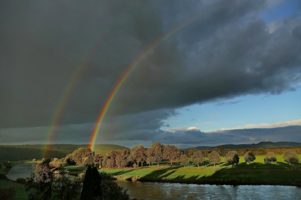 An der Klimastation des DWD in Bevern kamen 95,2 mm zusammen, hier war zuletzt der Oktober 2019 noch geringfügig nasser ausgefallen, zuvor muss man in dieser Messreihe aber sogar bis zum Rekordhalter 1998 zurück, um einen Oktober mit mehr Regen zu finden. Vergleicht man dieselben Zeiträume, war es hier immerhin der fünftnasseste seit 1974. Das Mittel der Jahre 1991-2020 wurde um knapp 40% überschritten, jenes von 1961-1990, als der Oktober noch deutlich trockener war, sogar um 90%. Ebenfalls klar überdurchschnittlich waren die Summen an den anderen Stationen mit Niederschlagsmessung: Hellental auf Platz 2 in der Region meldete 130,3 mm, Ottenstein 123,7, Amelith 121,7, Polle 120,7 und Vorwohle 113,6 mm. Noch dreistellig ist auch der Wert aus Hehlen auf 133 m Stationshöhe mit 104,7 mm, während sich die knapp unter 100 m befindlichen Messstellen in Lüchtringen mit 97,3 und in Holzminden mit 96,2 mm begnügten.