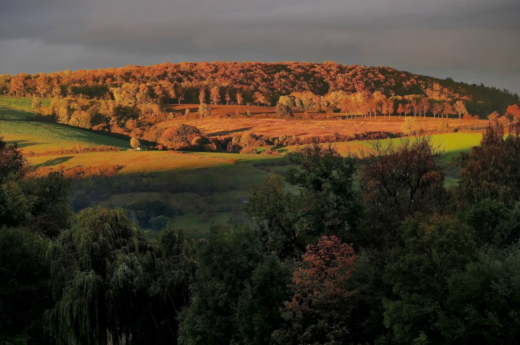 Mit zweistelligen Niederschlagssummen gleich zum Auftakt und einer ersten Dekade, in der oft schon fast zwei Drittel der mittleren Monatsmenge fielen, knüpfte der zweite meteorologische Herbstmonat zunächst nahtlos an die regenreichen Vormonate an, bevor ab Monatsmitte Hochdruck mit ruhigem Herbstwetter dominierte und der Region je nach Nebelauflösung einige sonnige Tage bescherte. Zusammen mit der zunehmenden Laubfärbung zeigte sich zumindest stundenweise, vorzugsweise am Nachmittag, eine farbenfrohe Kulisse, die an den sprichwörtlichen goldenen Oktober erinnerte. Entgegen der jahreszeitlichen Entwicklung war die zweite Hälfte die wärmere, wozu auch die häufige (Hoch)Nebelbildung in den Nacht- und Morgenstunden beitrug, die meist eine stärkere Auskühlung verhinderte. Nach einzelnen leichten Bodenfrösten bis Monatsmitte blieb es anschließend frostfrei. Die Niederschläge beschränkten sich nun meist auf leichten Sprühregen, so dass die Monatssummen je nach Standort etwas über oder unter den langjährigen Mittelwerten landeten. Die Sonne zeigte sich erstmals seit April wieder weniger als im Durchschnitt, das Minus blieb mit etwa acht Stunden aber überschaubar.