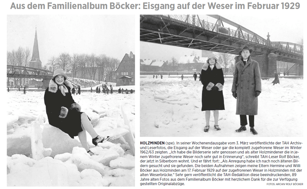 Vereiste Weser…… und Arbeitseinsatz im Februar 1929 (Archiv E. Gümmer, TAH vom 24.02.2018)Quelle: TAH vom 16.03.2018, Archiv Rolf Böcker)
