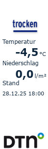 Mitte Oktober gab es schließlich das „Go“: Seither sendet die Station ihre Daten über das Mobilfunknetz an den Kooperationspartner, der mittlerweile nach einem Eigentümerwechsel unter dem Namen DTN firmiert. Von dort gelangen sie ins Internet und sind stündlich aktualisiert unter http://wetterstationen.meteomedia.de/?map=Deutschland&station=104412 abrufbar.