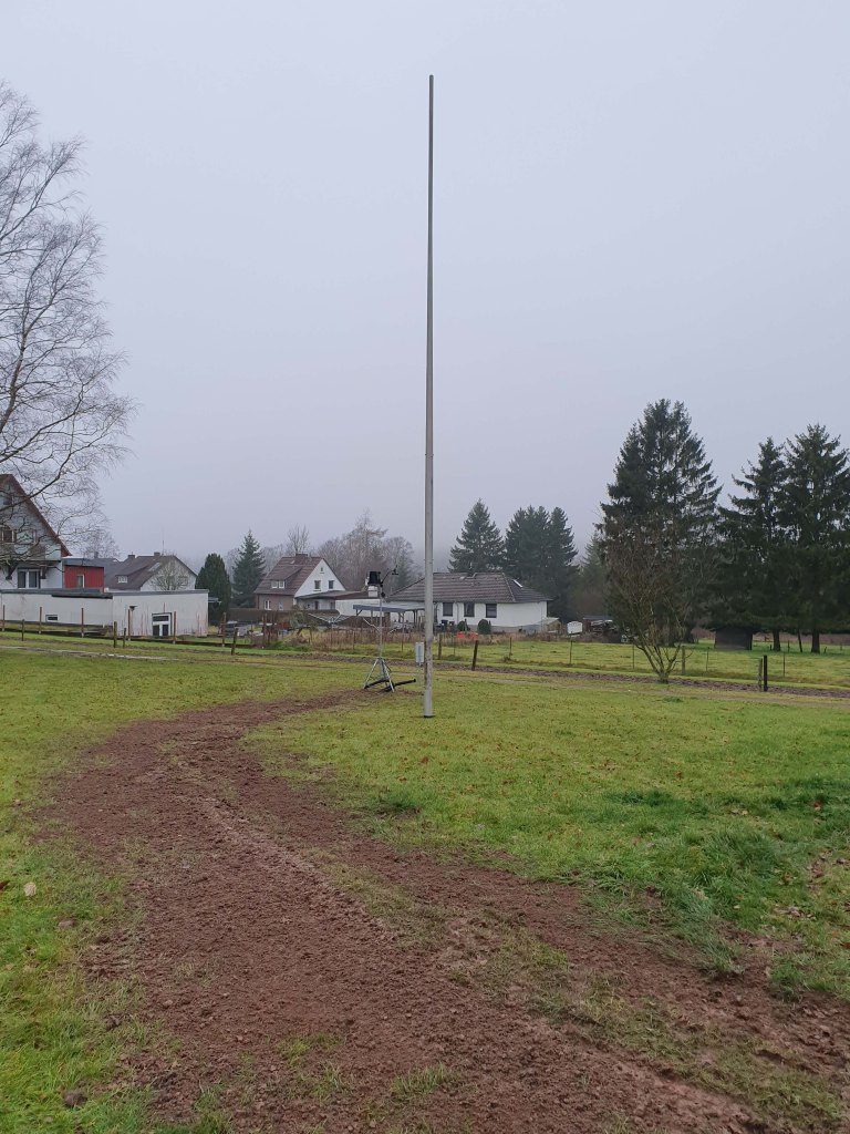 Der letzte Schritt – das Anbringen des Windmessers am neuen Mast – erwies sich dann als unerwartet hohe Hürde: Da der neue Mast einen deutlich größeren Durchmesser aufweist, konnte das vorhandene Befestigungsmaterial nicht verwendet werden und für die Anbringung größerer Schellen musste eine spezielle Halterung gebaut werden, was einige Zeit in Anspruch nahm. Im Februar war dann der Boden aufgrund der vielen Regenfälle aufgeweicht und ließ die Verwendung des nötigen Hubwagens nicht zu. Und ab März legte schließlich Corona auch dieses Projekt lahm…