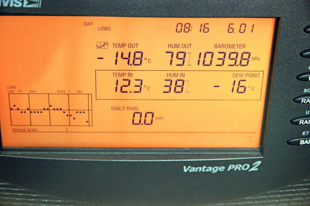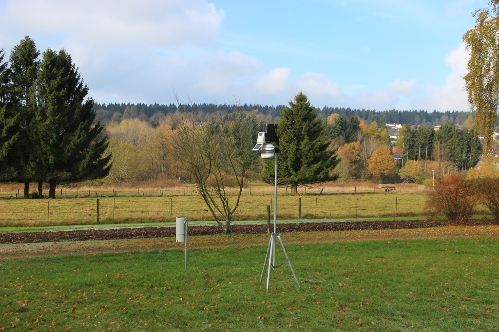Somit erfolgte zunächst am 8. November 2016 die Aufstellung des manuellen Niederschlagsmessers – pünktlich zum ersten Schnee der Saison. Zwei Tage später wurde dieser von einem privaten Grundstück am Dorfgemeinschaftshaus an den heutigen Standort im unteren Teil des Kurgartens verbracht und fest installiert auf der vorgeschriebenen Messhöhe von 1 m über Grund. Gleichzeitig wurde die vollautomatische Station des Typs Davis 6163 EU aufgestellt, kalibriert und in Betrieb genommen. Seit dem Mittag des 10.11.2016 liegen die damit gewonnenen Messwerte der Lufttemperatur in 2 m Höhe (strahlungsgeschützt und aktiv belüftet) lückenlos vor. Zusätzlich wird die Luftfeuchte, der Niederschlag in Auflösung von 0,2 mm sowie die Solarenergie und die UV-Strahlung gemessen. Bis auf den manuellen Niederschlagsmesser des DWD stammte und stammt die verwendete Messtechnik aus dem privaten Eigentum des Verfassers.