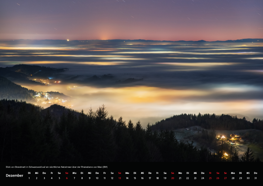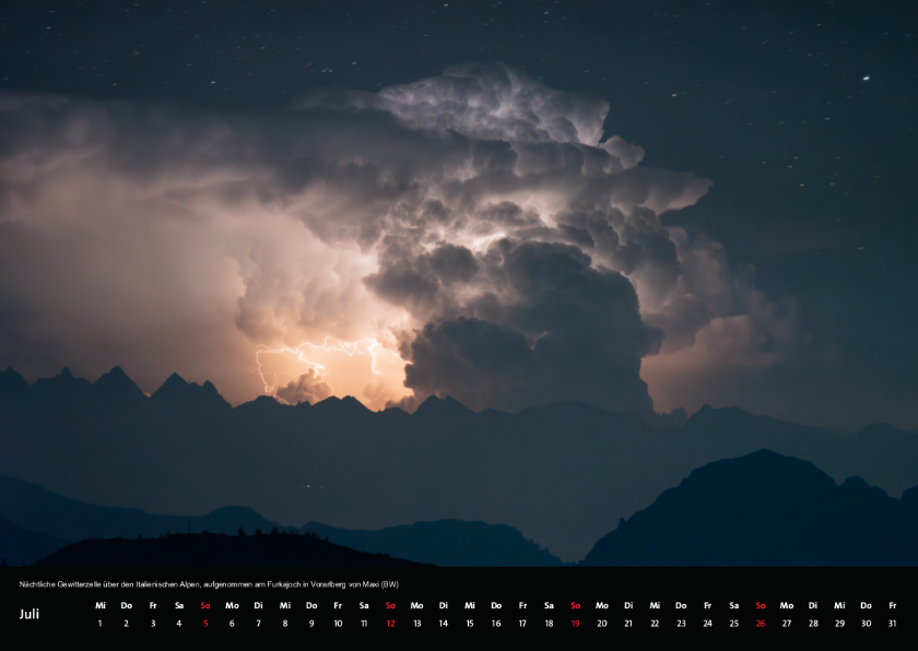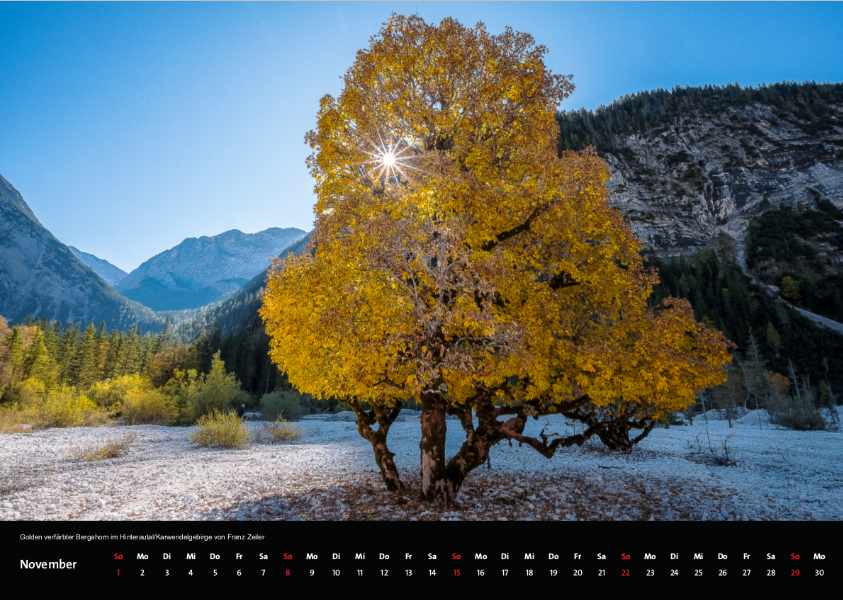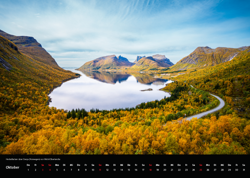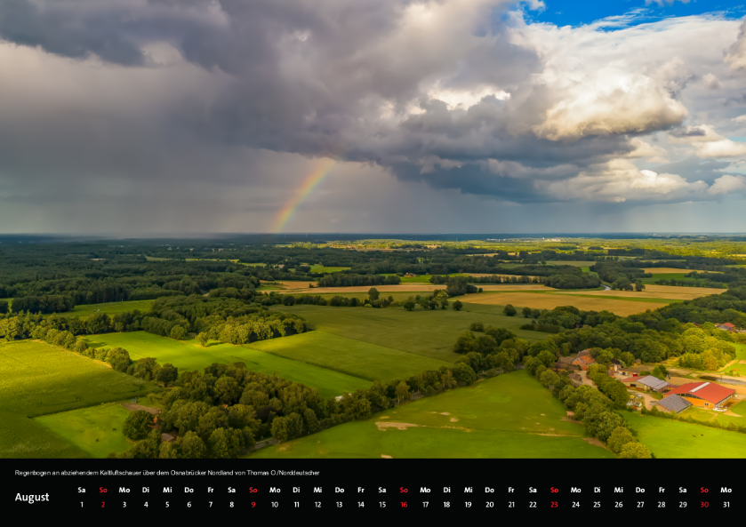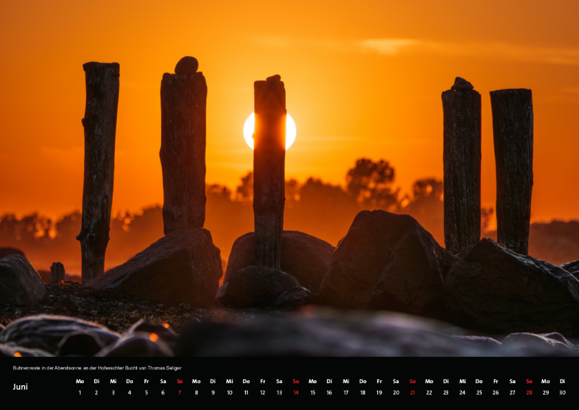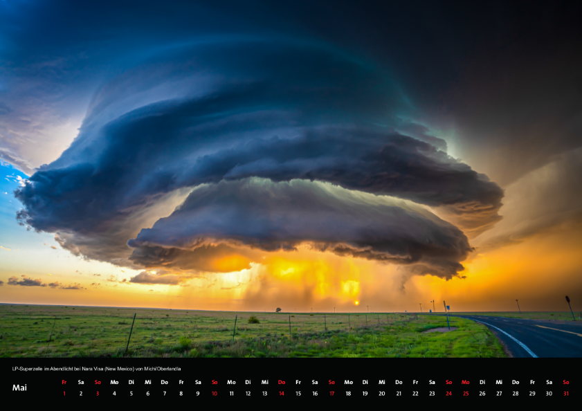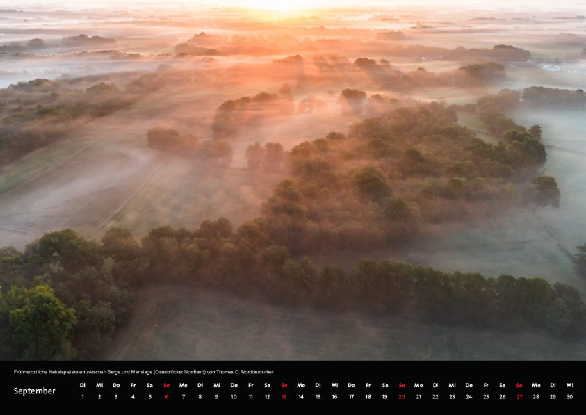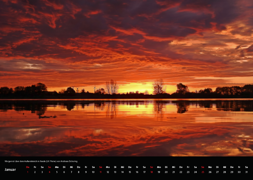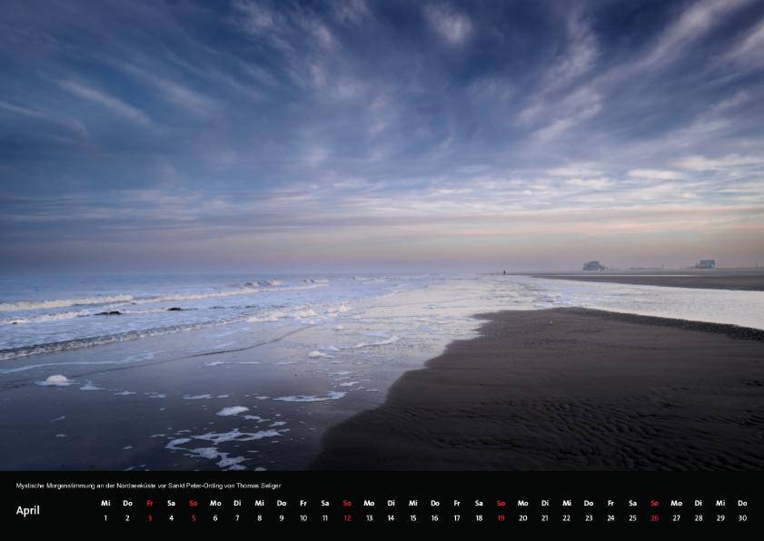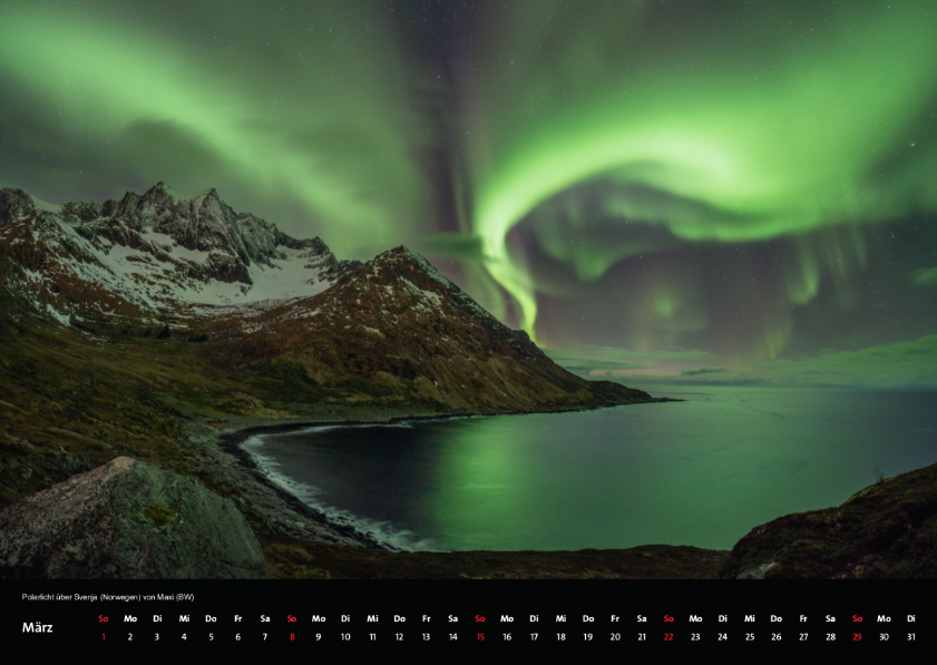 DIN A3 Format quer, 250 g Papier matt, 12 Monatsblätter plus Titelblatt = 13 Blätter, Spiralbindung.